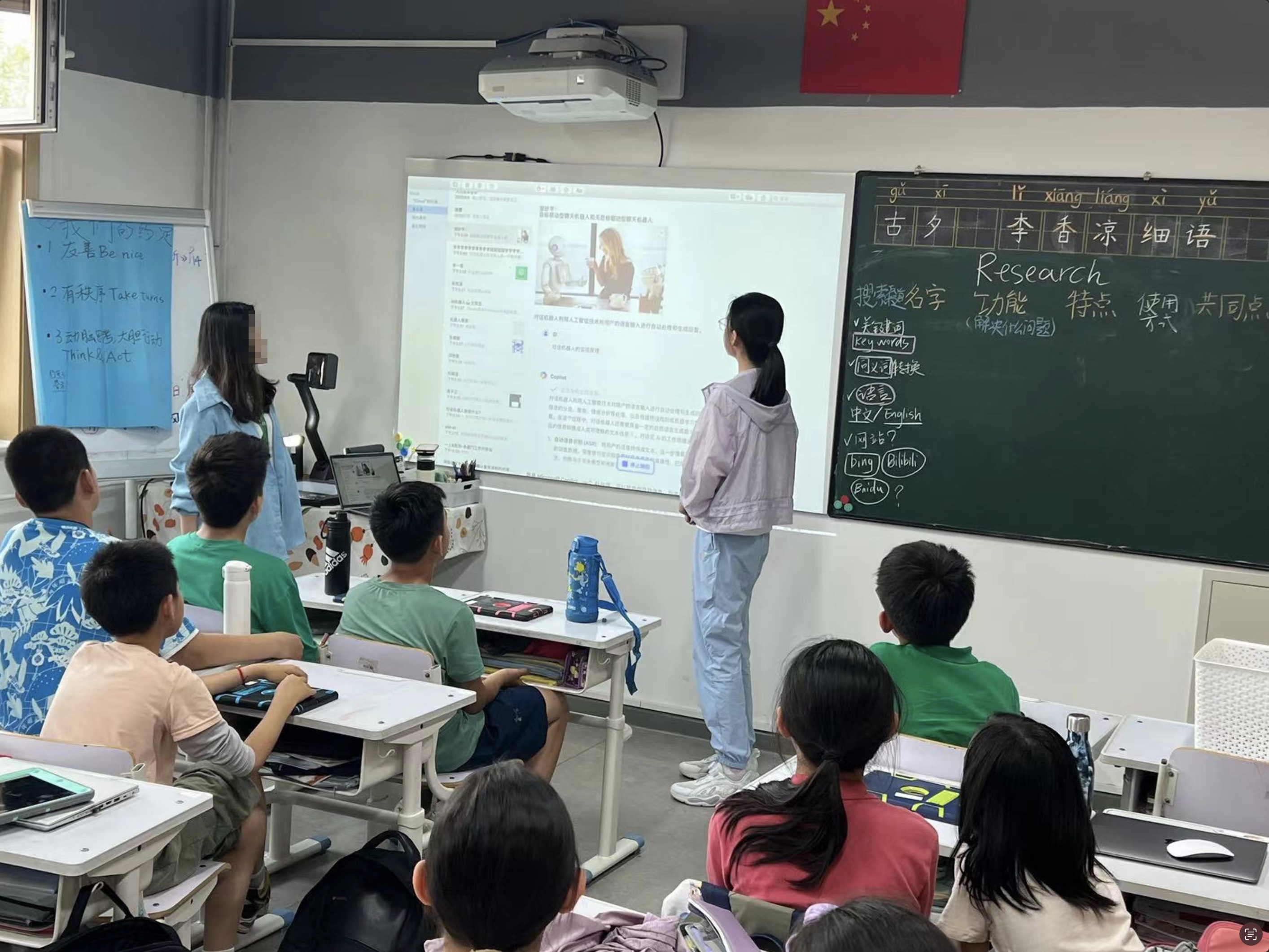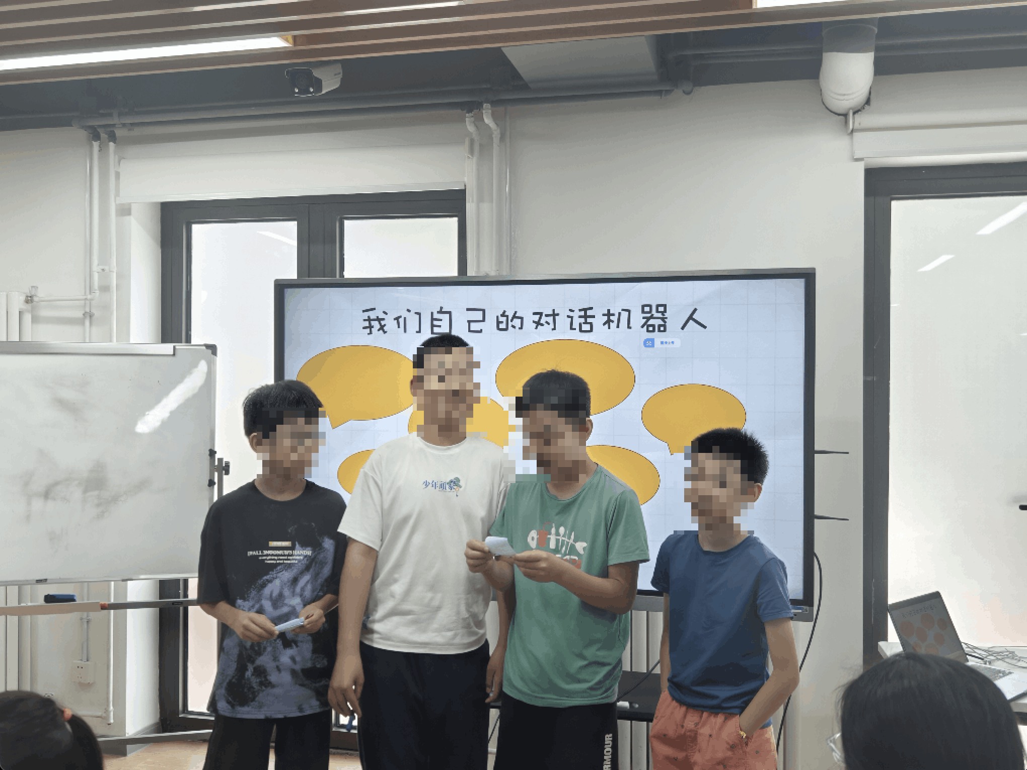 在“客服机器人”项目中,孩子们需要设计、编程和测试一个能够回答问题的智能机器人;